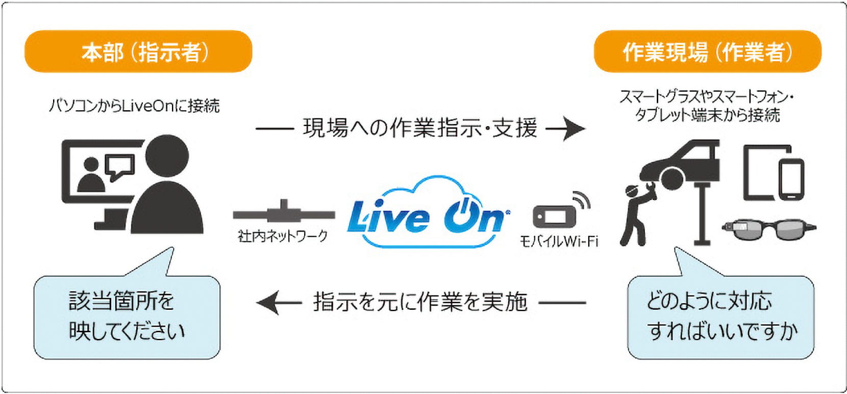 現場で作業をしながら、作業員の目線に合わせて現場確認ができます。現場確認がリアルタイムでかつ、スムーズに行えます。カメラを持つ必要がないため、作業員が安全を確保したまま、現場確認ができます。